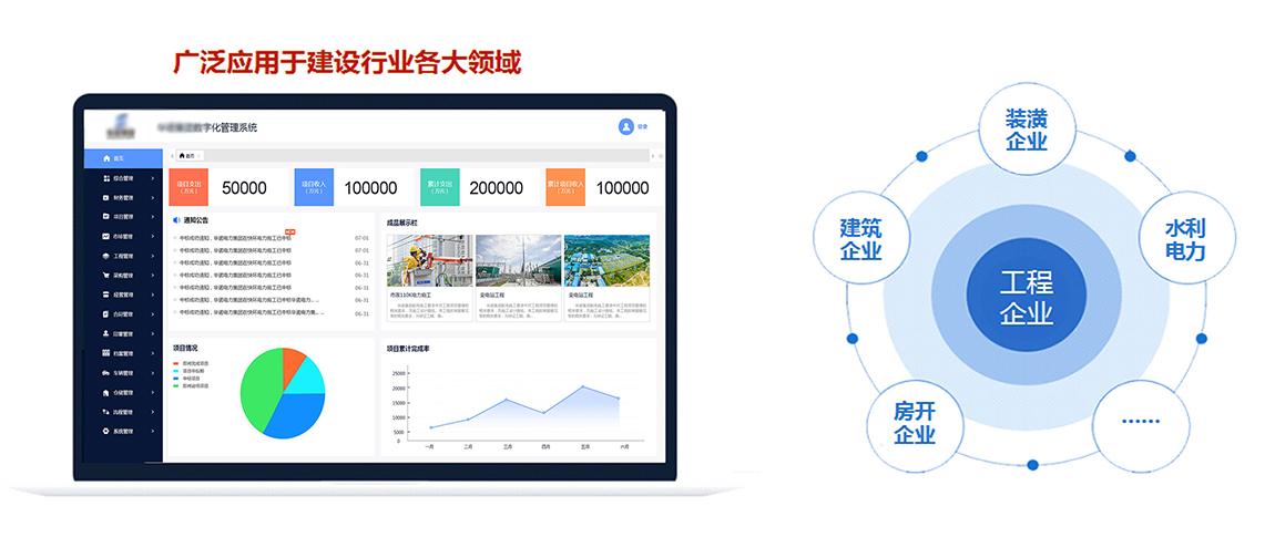 數(shù)字化管理系統(tǒng)對企業(yè)工程項目從項目投標中標、項目過程管理、合同管理、物資設備管理、采購管理、項目過程管理、施工隊管理、供應商、成本核算等進行全面綜合管理;縱向貫穿投標、采購、施工、竣工的全過程,橫向涉及公司內部的各相關崗位,是一套全方位、集成的企業(yè)項目綜合管理平臺。通過對成本、進度、質量、安全等方面的控制,以及對合同、結算、支付、資金等要素的管理,來提高工程類企業(yè)對工程項目的綜合配套能力。